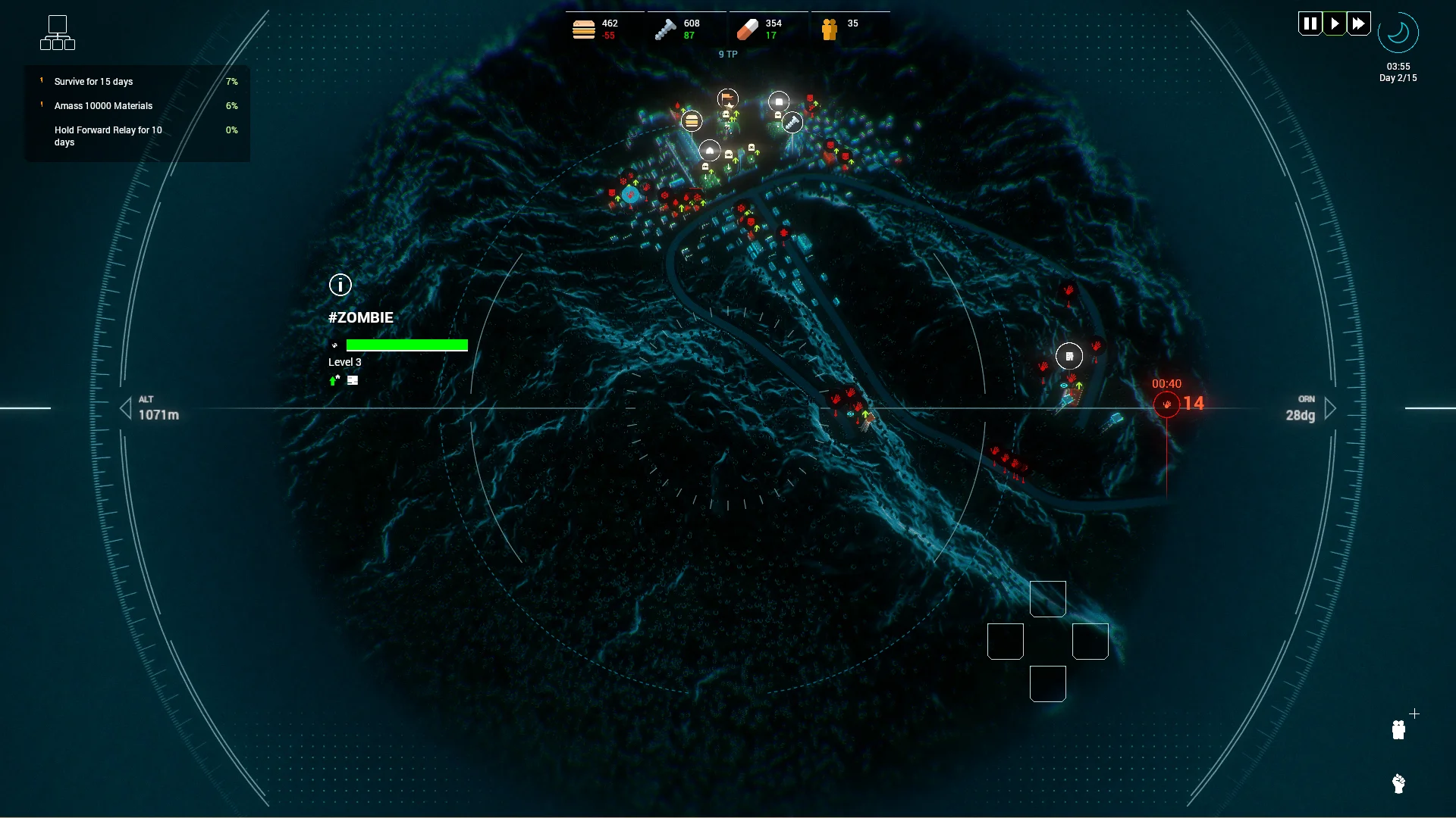 Тем не менее, игра предоставляет обширный набор разнообразных подразделений для найма, пассивных улучшений либо активных улучшений построек. Каждая миссия представляет собой специфическую карту с довольно ограниченными ресурсами - где-то больше гаек, где-то хавчика, где-то пилюль, а где-то - людей. Каждое подразделение требует людей и материалов для найма, питания для полноценного функционирования, и лекарств чтоб не откинуться. На картах можно встретить фермы и заводы, где что-то из ресурсов можно вырабатывать бесконечно (людей это не касается), и есть домики с небольшим запасом барахла, которое можно собрать. И вот в сочетании почти полной безграничности опций и ограниченности ресурсов и есть вся прелесть игры. На одной карте с ресурсами всё неплохо, а сторожевые вышки позволяют долго отбиваться от накатов зомбей. На другой - отравленные территории, где пехоте фу, а технике норм. Где-то эту пехоту тупо не нанять из-за отсутствия казарм как факта (а значит с захватом зданий будет непросто). Где-то можно выбомбить мосты, чтоб зомбям пришлось топать по дну, но это сделает невозможным захват больших производственных мощностей.