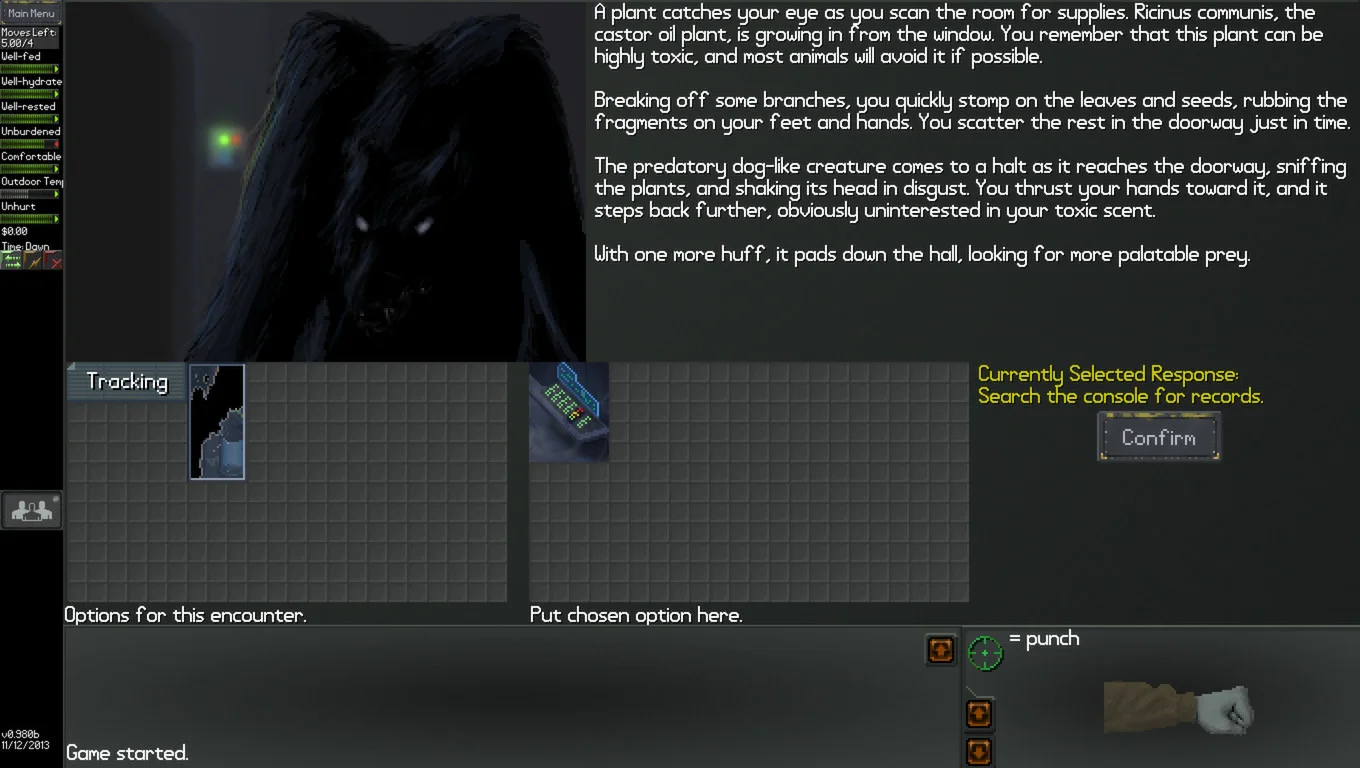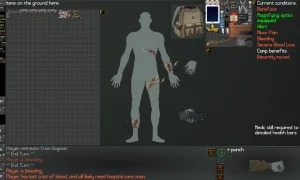 А ещё это рпг без прокачки, всё по чесноку. Как можно за несколько дней, да даже недель, обучиться куче навыков? Что на старте выбрал, то и твоё, максимум потом плохое зрение в клинике скорректировать дадут. Поэтому все способности к выживанию будут определены сразу в начале игры. А умереть тут крайне легко - в бою идёт лютейший эффект снежного кома, когда первый пропущенный удар ведёт к кровотечению и болевому шоку, которые ещё дальше снижают боеспособность. Ещё и действий в бою просто до ужаса много. Будучи сильным, крепким и умеющим в ближний бой, не будет проблем в первом же лесочке собрать себе копьё и влёгкую разваливать подавляющее большинство врагов, но даже хоть какие-то полученные царапины без обеззараживания и перевязки ЧИСТЫМИ тряпками могут привести к сепсису. А питьё воды из лужи и поедание сырого мяса или неопознанных грибочков/ягодок из леса несколько раз, может, и пронесёт, но в долгосроке обязательно приведёт к тяжелейшему пищевому отравлению. А без знаний в медицине и таблетками отравиться легче лёгкого. Не говоря уже про смерть от холода или мозолей от неудобной обуви. Или лечь спать и не успеть проснуться, когда кто-то подкрадётся близко.
