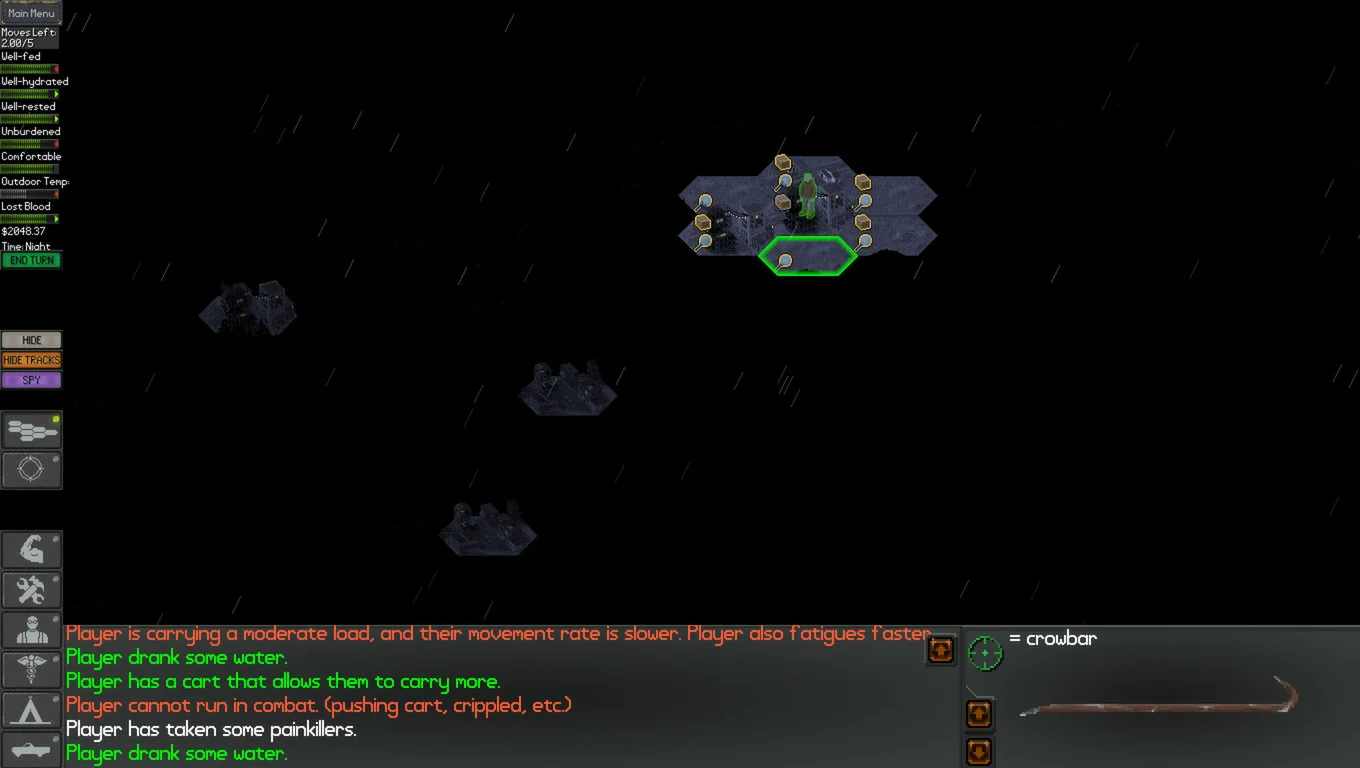 это пример игры, где графика вообще не имеет значения, хотя по мне так, еще учитывая, что это делал один чел, вполне норм. такого вайба и геймплея хардкорного постапка мало где встретишь, если вообще встретишь. казалось бы солнечные полянки, елочки зеленеют, озера блестят, но за этой природной лирикой кроется беспощадный мир, наполненный смертью. первых раз 10-15 вы будете умирать в пределах 5-10 хексов от места спавна. а потом будете умирать раз 40 после 20-30 хексов, ну и будете умирать после 50+ хексов еще чаще, чем в самом начале, и дальше умирать и умирать. тут почти не важен твой скилл, ум и хитрость. крутой лут, оружие и аммуниция тебя не расслабляют, а только поднимают градус напряжения, потому что очень жалко начинать все с самого начала в дранном больничном халате с куском стекла в руке. а умереть случайно здесь можно в любой момент игры: натыкаешься на какую-то неведомую хрень, бежишь от нее, изрядно уставший натыкаешься на стаю собак, отстреливаешься, бежишь, падаешь без сил и вот уже твое обессиленное одетое в топовую броню тело обгладывает бомж-людоед. буквально каждый шаг несет смерть, лютую и беспощадную. но остановиться и бросить играть невозможно. это самая хардкорная дичь в которую я играл и спустя 10 лет готов вернуться с большим удовольствием