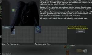 Когда выживание перестаёт быть проблемой, остаётся только смотреть, что есть в мире из сюжетного. И тут всего кот наплакал - несколько ключевых мест, которые будут рано или поздно подсвечены на карте, и несколько мелких, которые раскиданы неподалёку от начальной точки и куда можно наткнуться случайно, если не уходить далеко. И там просто текстовые зоны с вариантами выбора, где изредка будет возможность выбрать особые возможности через навыки или ключевые предметы. Но в остальном экипировка практически не играет роли, если по скрипту положено ободраться об кусты - не важно, сколько на тебе одето, и так далее. Более того, все эти текстовые локации изобилуют мгновенными смертями, причём часто вообще в неожиданных местах, типа не послушаться маленькую девочку или королю-сектанту слишком льстить. А жизнь в игре одна. Вот и приходится либо сходить с ума от рутины собирания говна на карте (где даже боёв нормальных уже нет) и тыкаться как слепой котёнок, либо прибегать к сейвскаммингу.