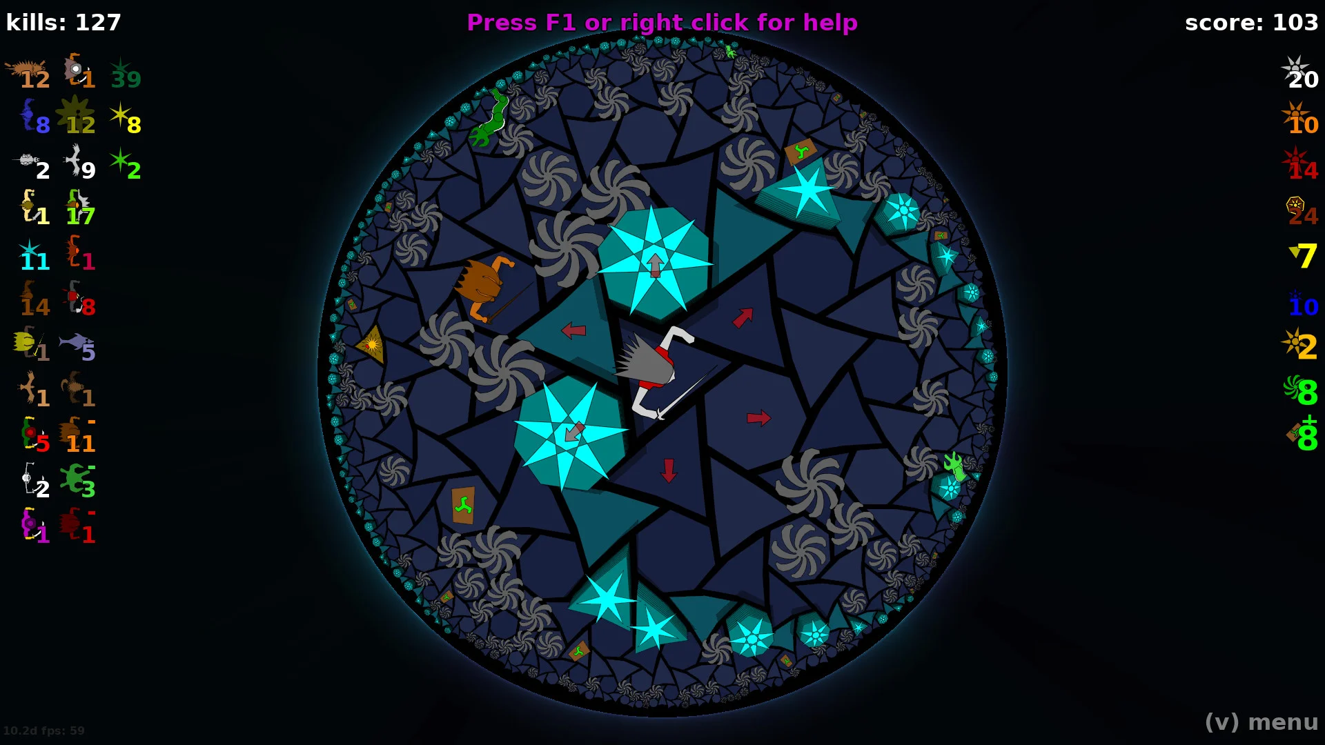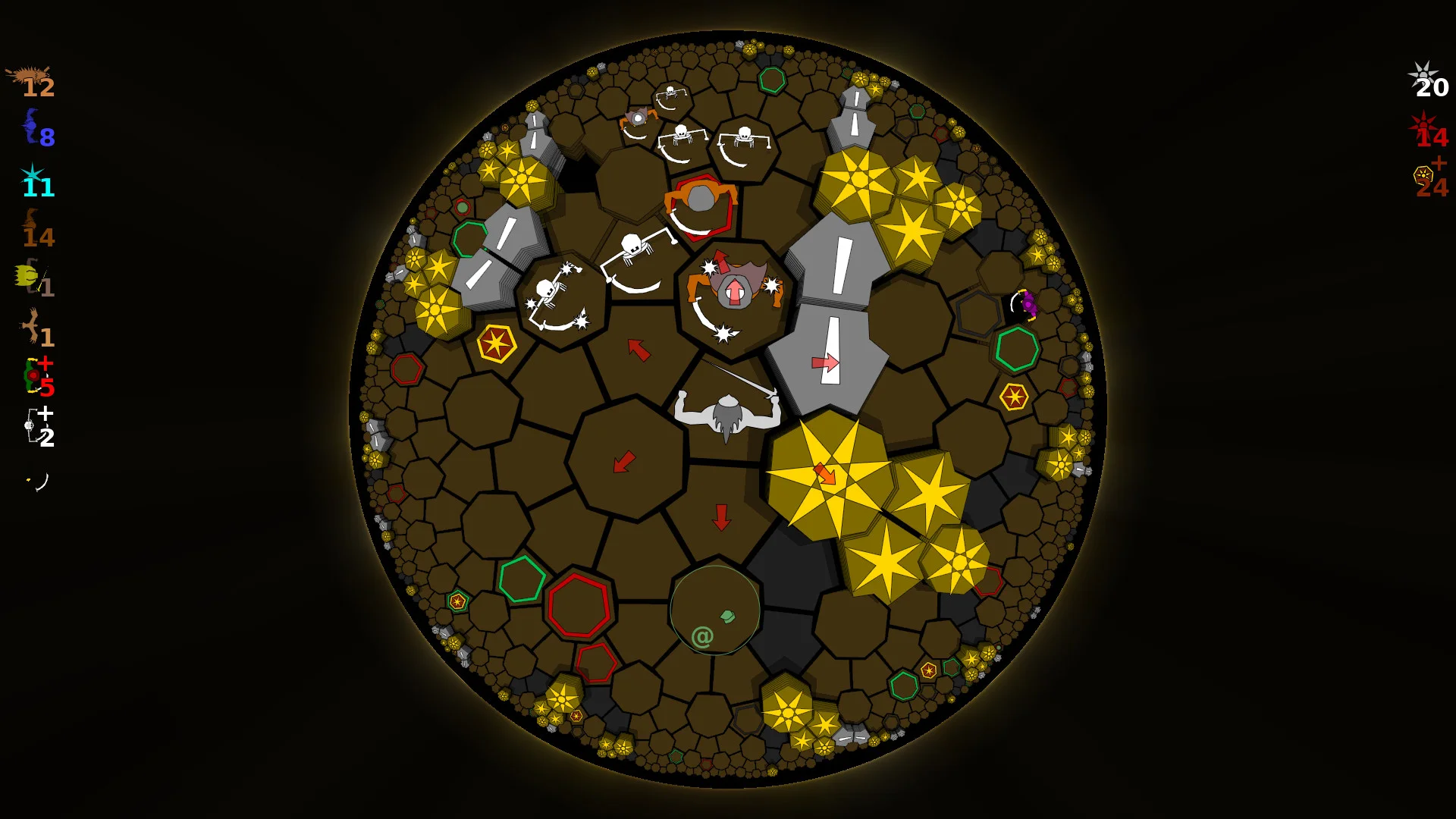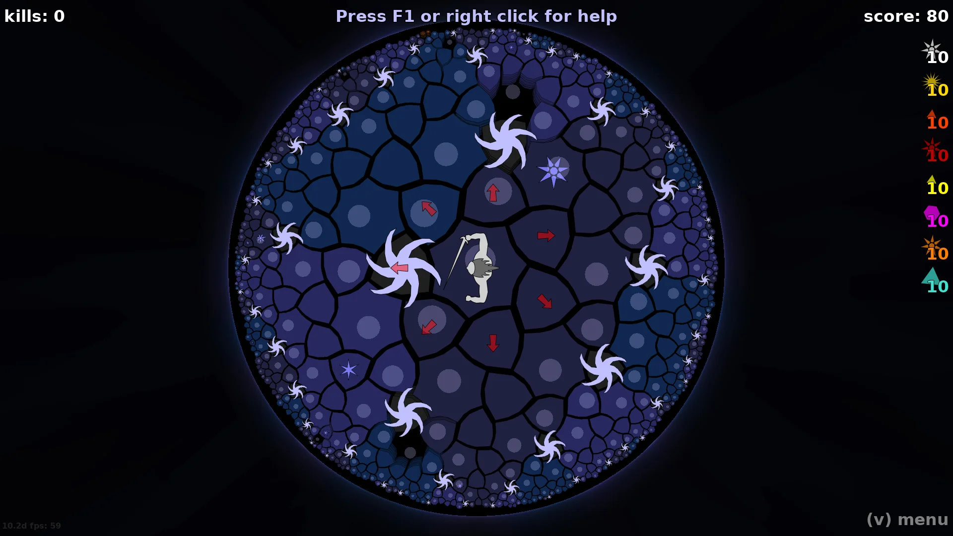 2d рогалик, без прокачки и шмота. Но с неевклидовой геометрией! Где ещё можно просто идти прямо и смотреть, как мир вокруг выворачивается назнанку? То самое славное место, где π не только не равно 3,14..., а вообще не является константой.