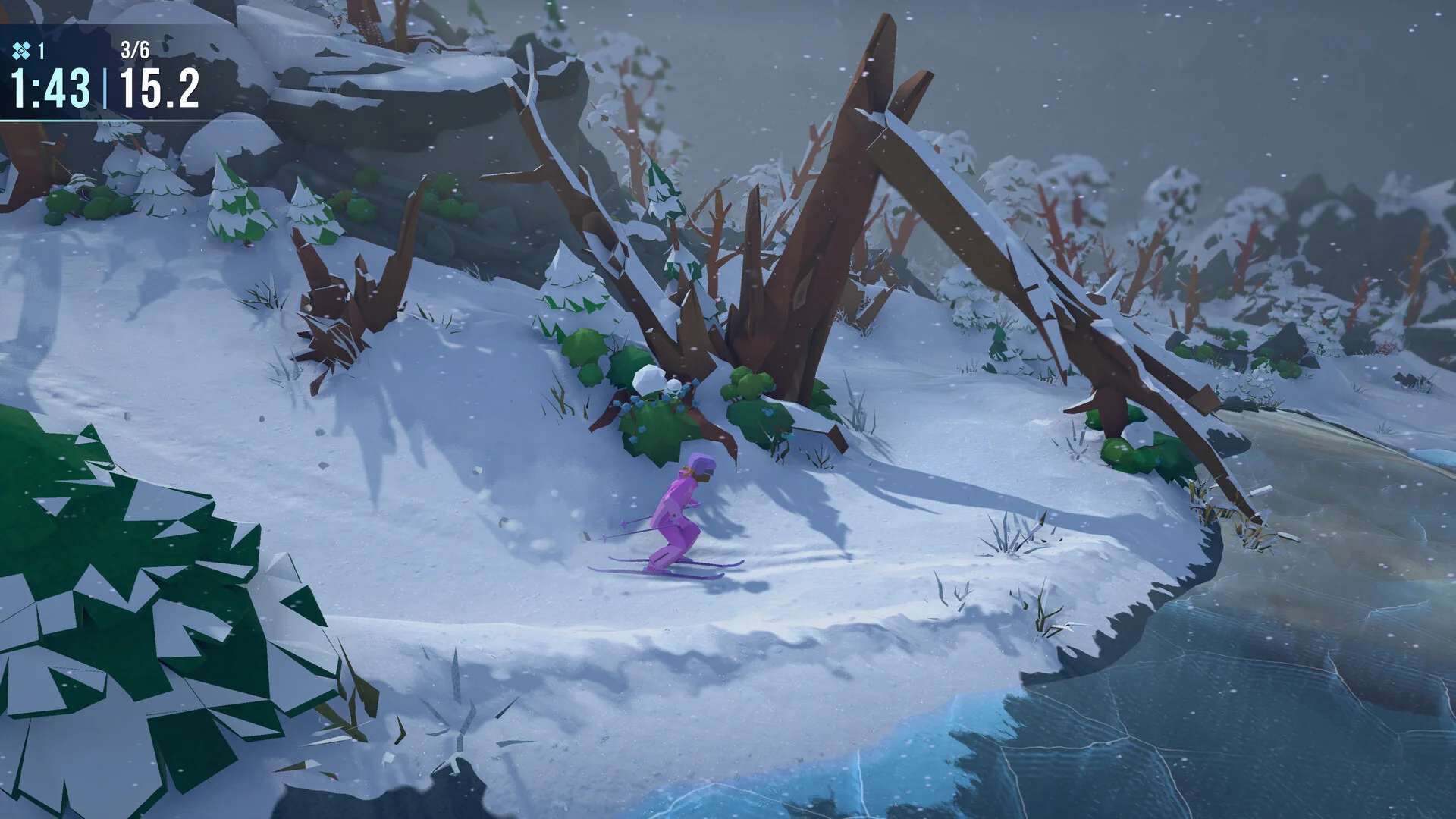 5. Хотя писал что визуал классный, но в итоге довольно заметно что снег из под лыж просто вылетает и исчезает обычной анимацией будто. Хз, тут я наверное просто докапываюсь.